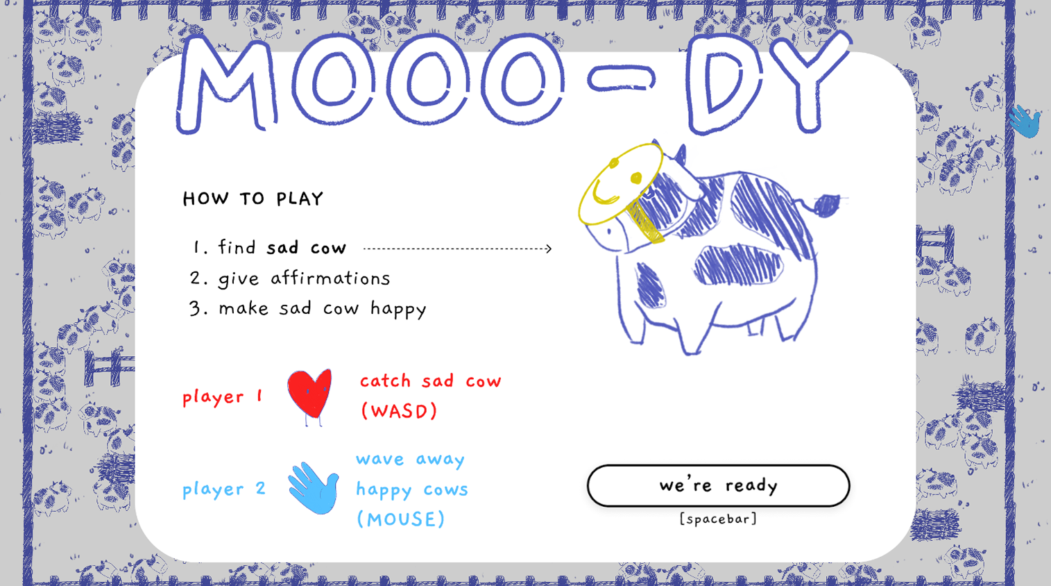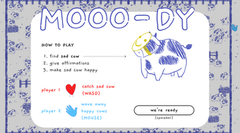 ✦ Player 1: WASD to move, type to give cow affirmations